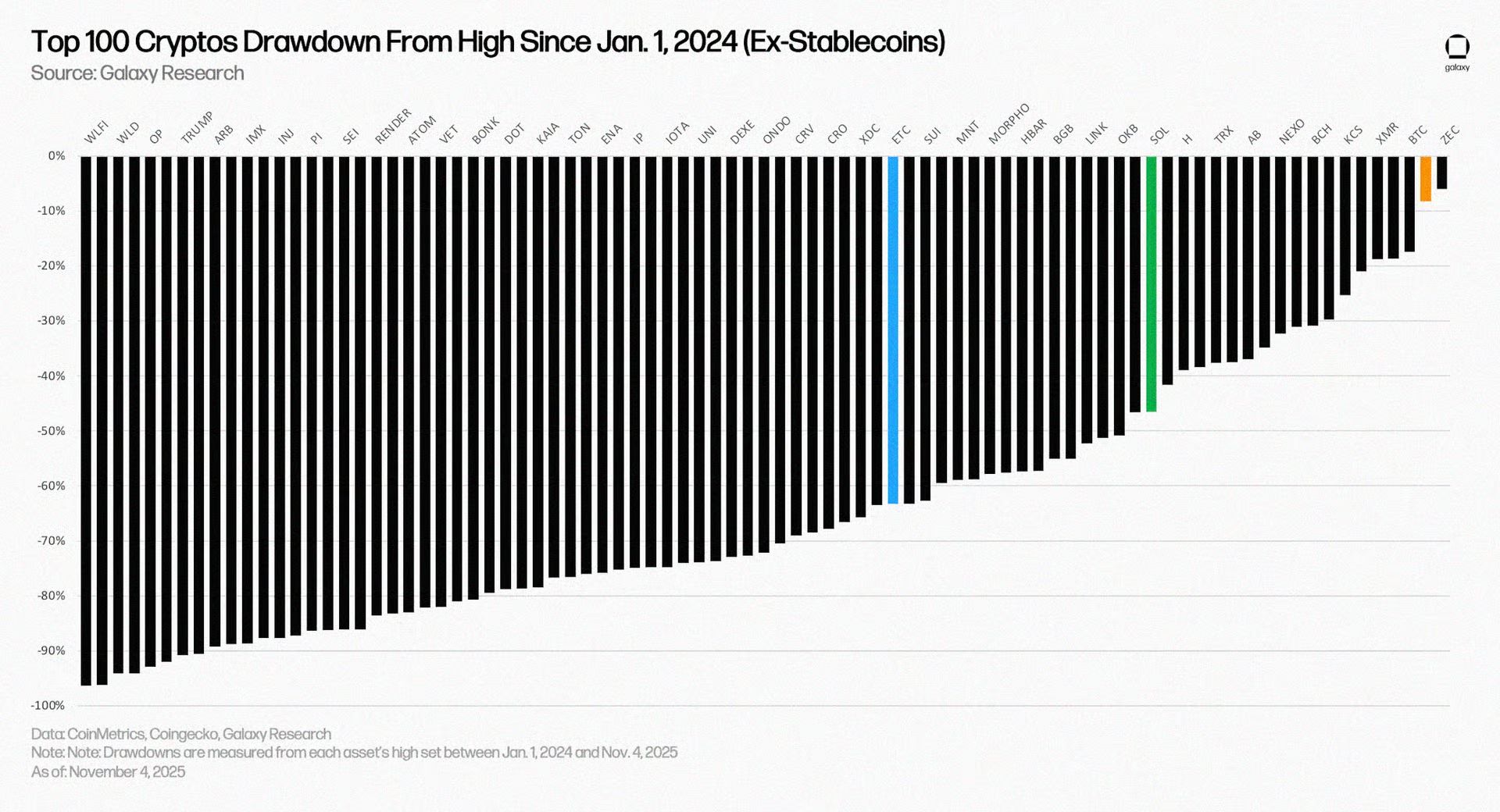 “Drawdowns of the Top 100 Cryptos Since Jan 1, 2024 (Ex-Stablecoins)”
